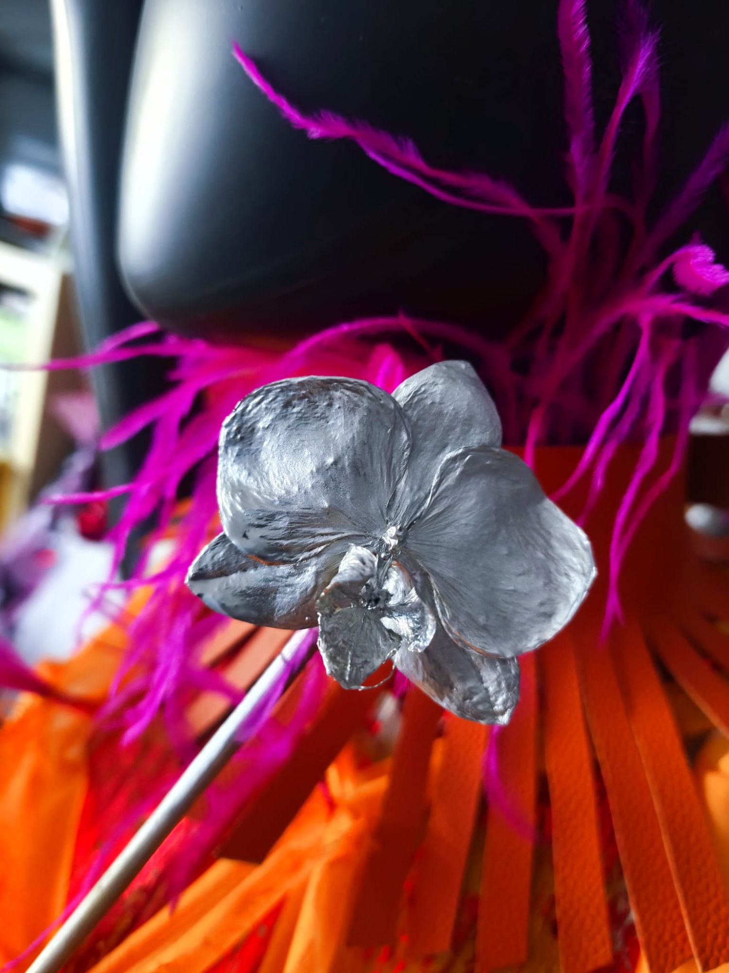 Erhältlich ist ein Strauß aus bunten Blumen – gewebt, gestrickt, bedruckt oder beklebt.