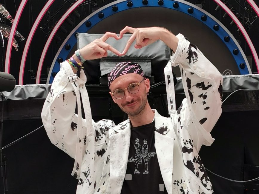 Ich erlebe solche Collabs als bereichernd. Auch, weil man zu zweit oder in einer Gruppe einfach stärker ist als allein. Im Team freundschaftlich zusammenzuarbeiten hat sich für mich und meine Persönlichkeit außerdem als die beste Form erwiesen. Ich bin kein Einzelkämpfer. Außerdem verdiene ich mein Geld noch nicht hauptsächlich mit meinem Label und bin darum auch auf Kooperationen und Sponsoren (zum Beispiel mit Gunold) angewiesen, um solch eine Kollektion mit allem, was dazu gehört, zu stemmen. Hauptberuflich arbeite ich ja als künstlerisch-technischer Assistent an der Modefachschule Sigmaringen und betreue etwa GastschülerInnen oder unterstütze die Social-Media-Lehr- und Lernredaktion. Doch das Modell der Drei-Tage-Woche lässt mir dabei ausreichend Zeit, um an den freien Tagen Bands wie der von Pink hinterher zu reisen und mich bei den Konzerten für neue Customized-Clothes-Designs inspirieren zu lassen. Work-Life-Balance in optimaler Form also.
